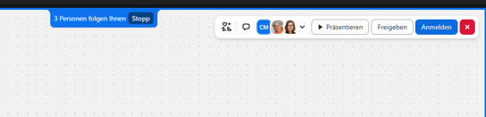Was ich noch nicht ausprobieren konnte, ob die anderen Gruppen das sehen, wenn eine Gruppe ihr Whiteboard verschiebt. Was sie ja machen müssen, um an ihr Mind Map zu kommen. Es kann sein, dass man das rechts oben über den Filter einstellen kann, wem man folgt.