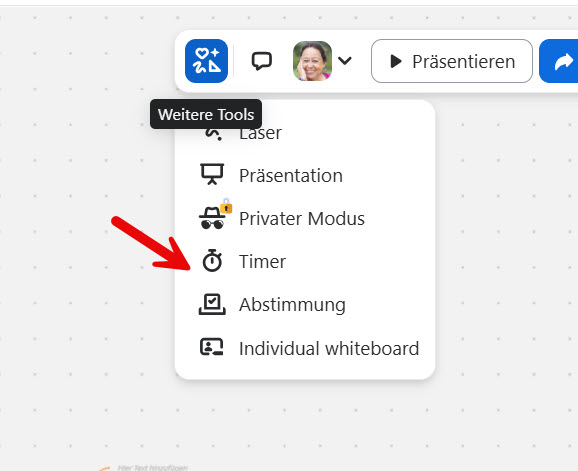 → Auf dem Zoom-Whiteboard gibt es noch einen extra Timer, da können die Gruppen dann sehen, wenn ihre 5 Minuten vorbei sind und zum nächsten Mind Map wandern.