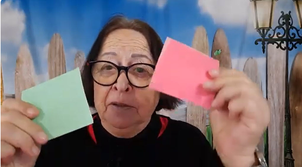 2 – Dann drehst du einen Zettel der anderen Farbe um und verfahre genauso wie mit dem 1. Zettel.