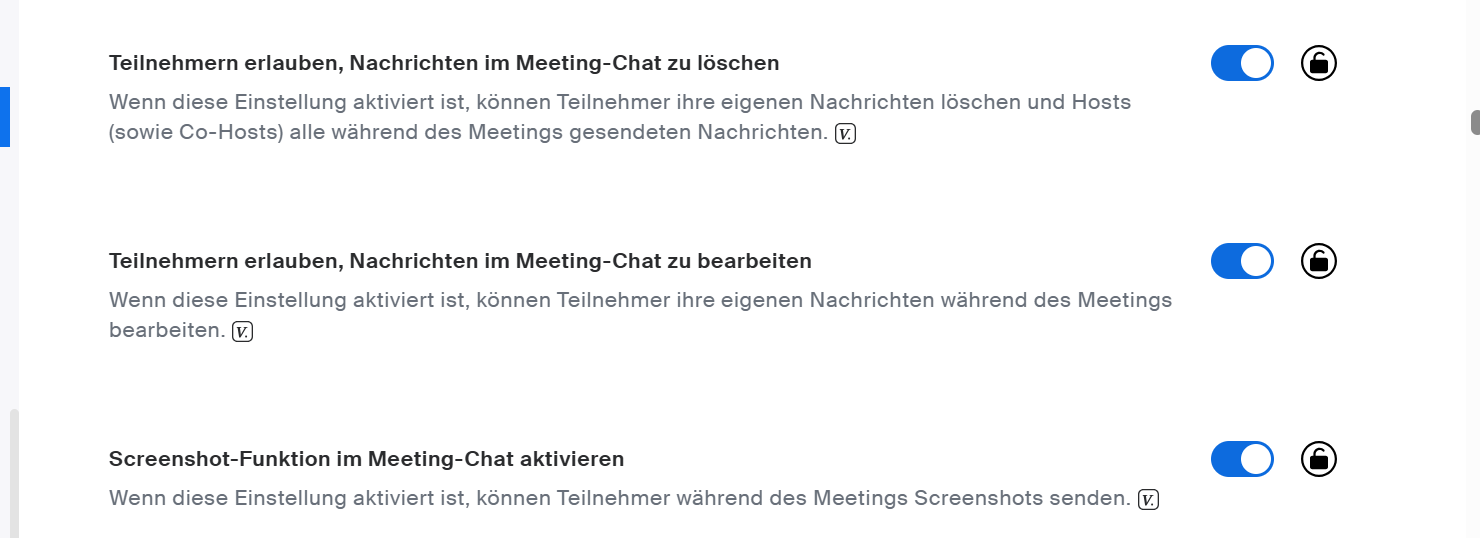 - ob der Chat überhaupt offen ist und die Teilnehmenden dort schreiben können